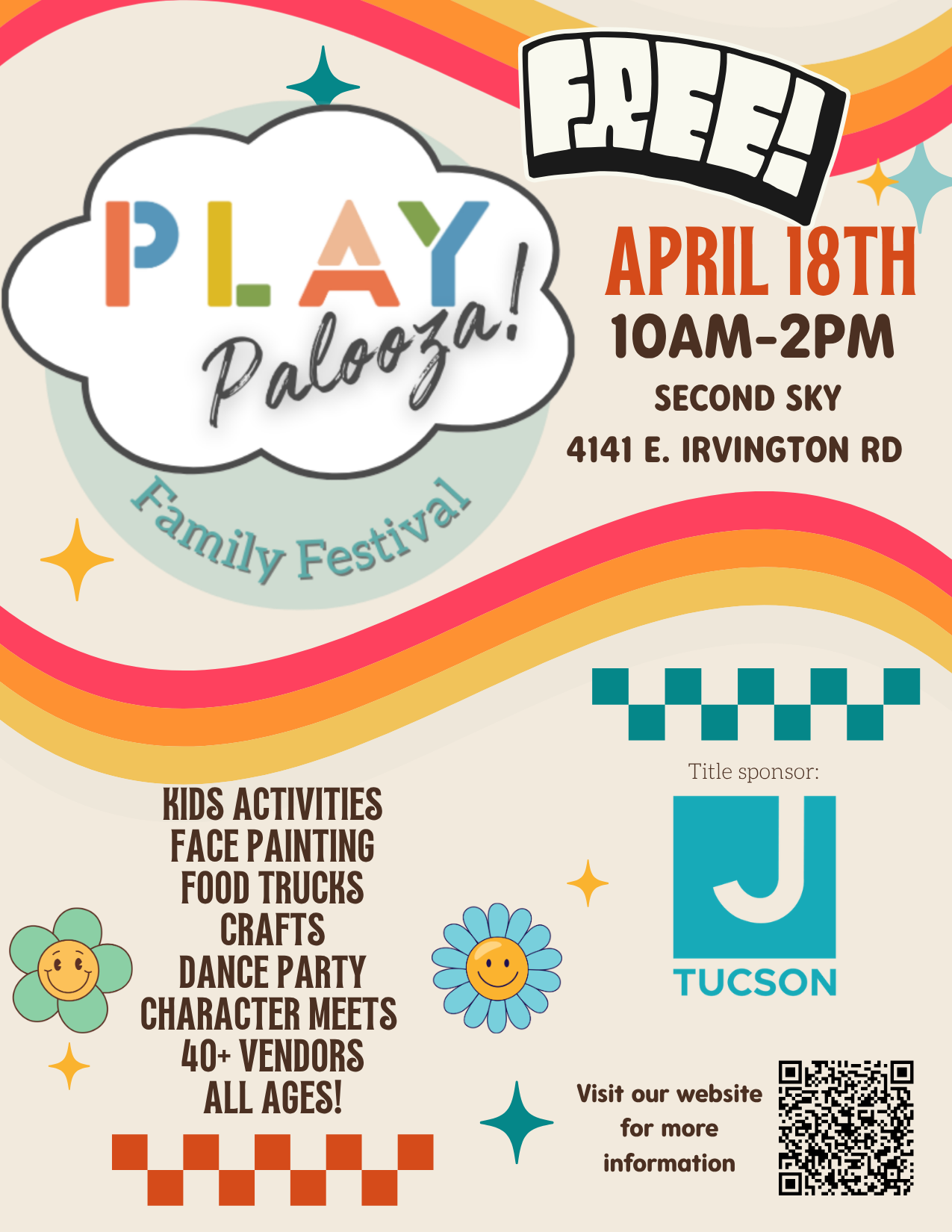 FeaturedSecond Sky 4141 E Irvington Rd, Tucson, AZJoin us for Play Palooza! A one-day family festival at Second Sky filled with interactive activities, creative play, and hands-on fun. Enjoy games, crafts, movement, and community connection in an…